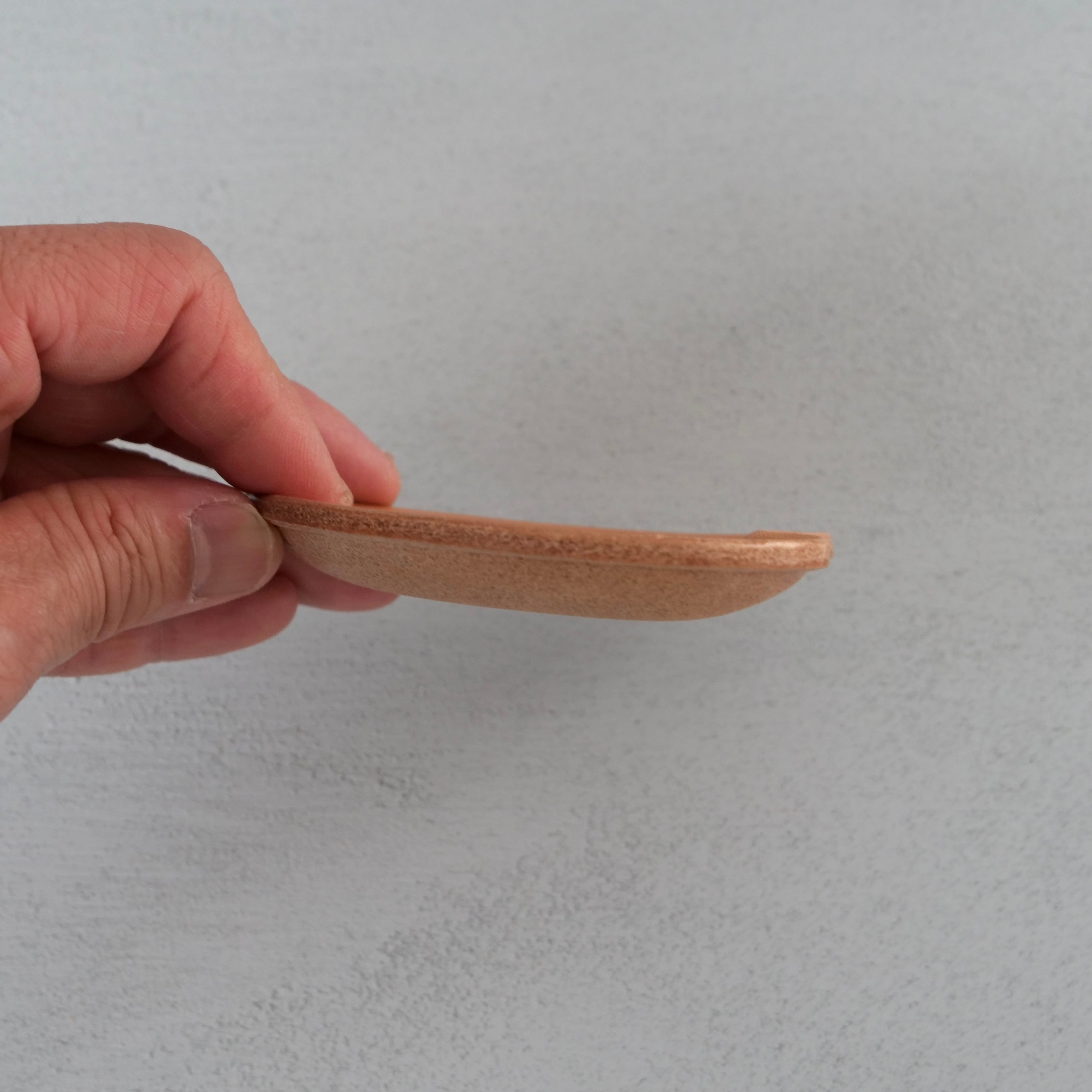 革の部位の中でも一番繊維の詰まったベンズ部分を使用して成形しました。