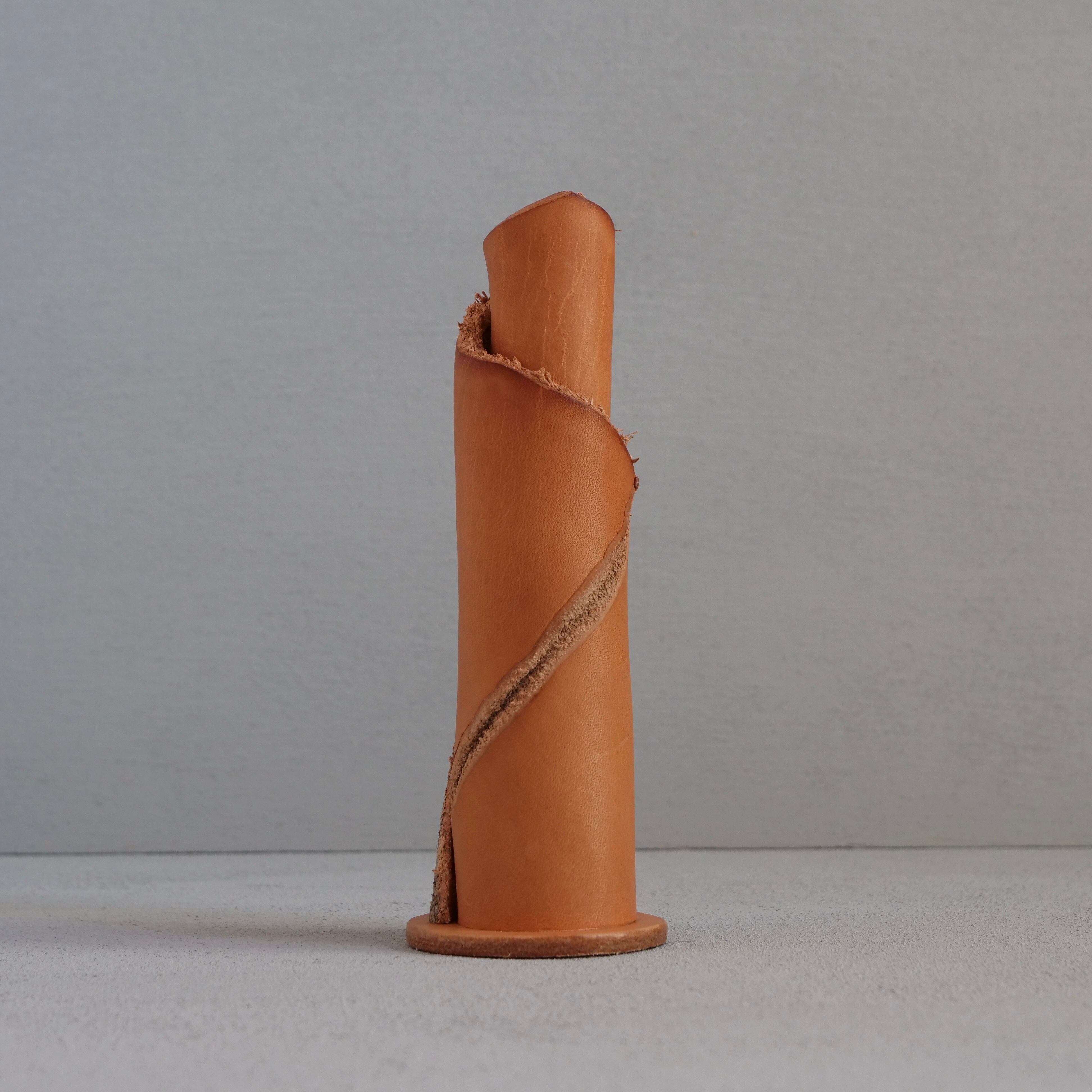 丸めてポイせず、丸めてギュウ(牛)!と最後の最後まで役目を果たしてもらうために生まれたヌメ革の花挿しです。