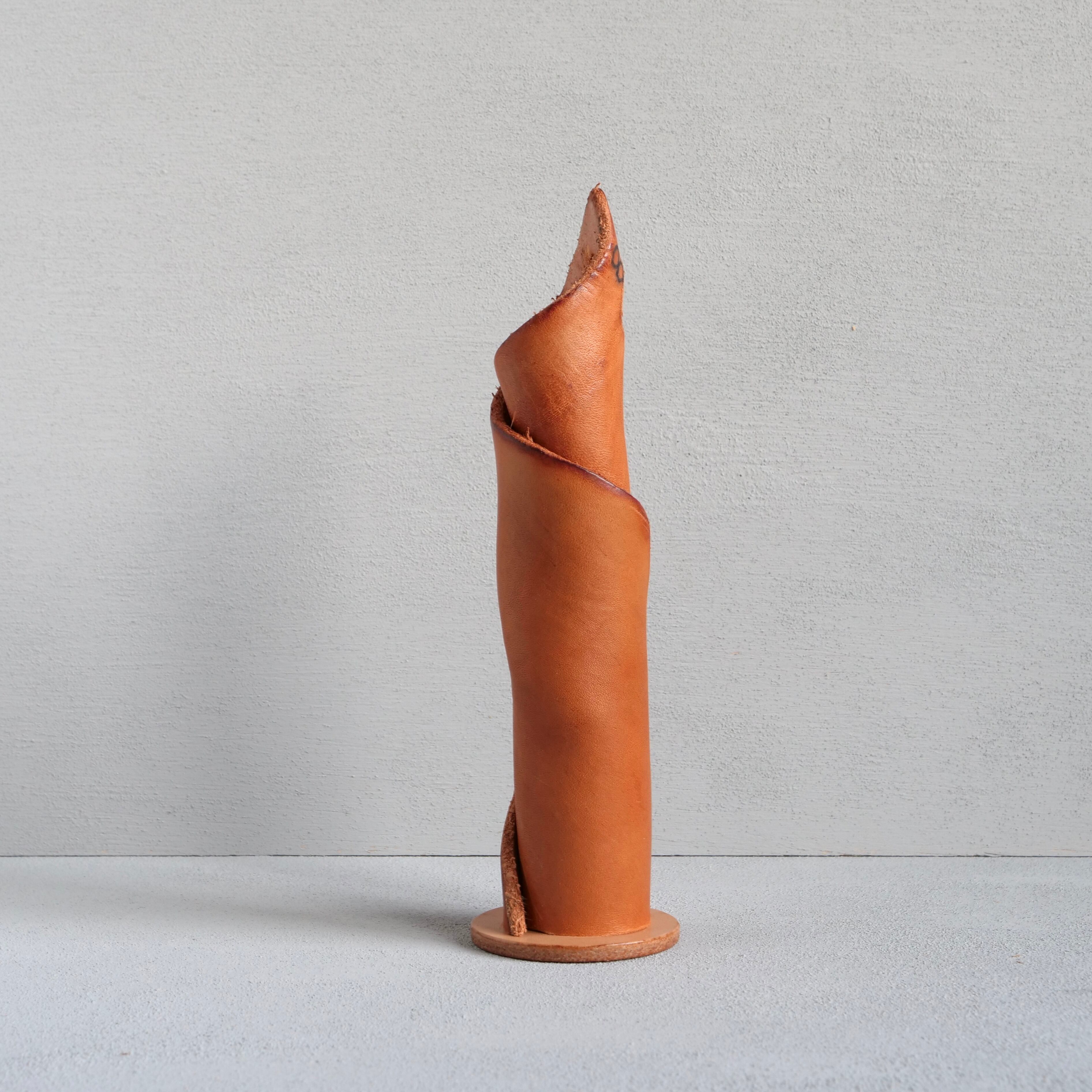 財団法人日本タンナーズ協会のWEBサイトに掲載して頂いてからご好評頂いております。一点物のヌメ革の花挿しシリーズ第9作目です。